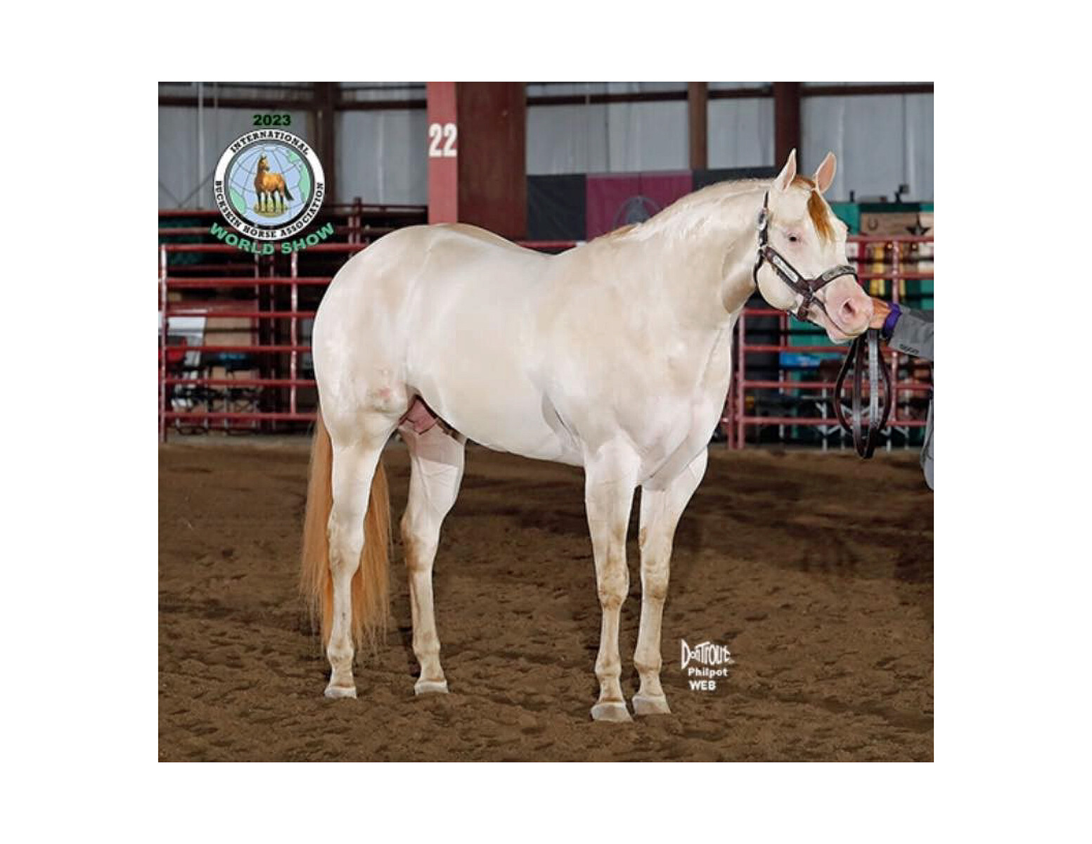 Ckades Investment, fondly known as "Casper" by his many fans, is an impressive three-time World Champion Perlino stallion born in 2020. His journey began under the loving care of his breeder, Janet Benson-Harms, and was trained under the expert guidance of Jeff Barman Show Horses.
